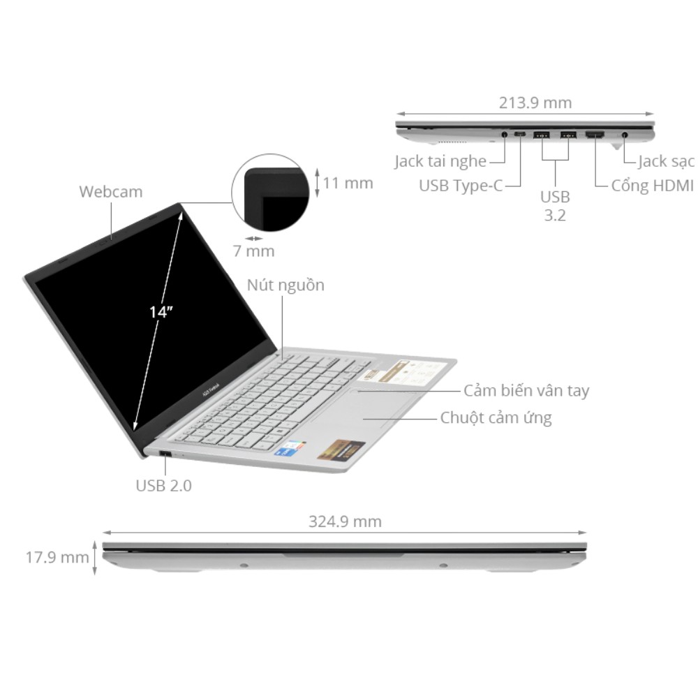 Asus rất chú trọng đến quyền riêng tư của người dùng khi trang bị cho Webcam 720p HD một màn trập vật lý, giúp bạn chủ động đóng camera khi không sử dụng. Về kết nối, dù thân máy mỏng nhưng Asus VivoBook X1404VAP | Core 5-120U vẫn sở hữu đầy đủ các cổng ăn chơi:
