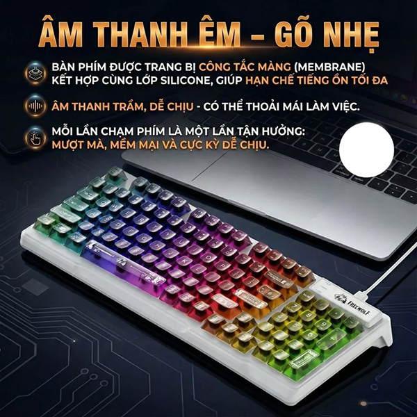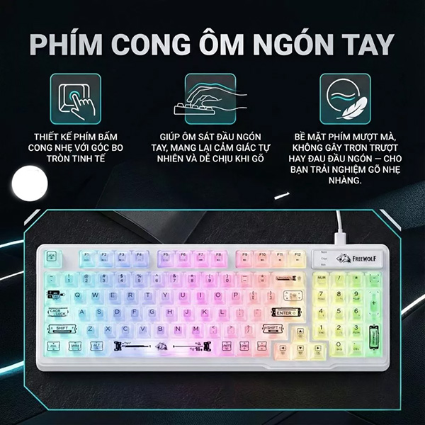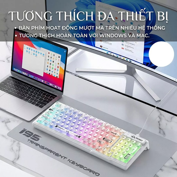 | Loại keycap | Keycap mờ trong suốt, ánh sáng xuyên đều |