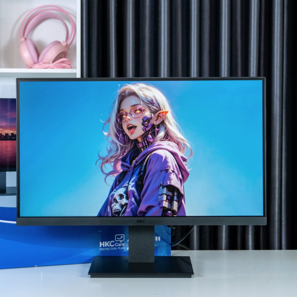Dù không phải là một chiếc màn hình chơi game chuyên nghiệp, HKC vẫn được trang bị tần số quét 75Hz. Con số này cao hơn tần số quét 60Hz truyền thống, giúp các chuyển động trên màn hình trở nên mượt mà hơn, từ thao tác cuộn văn bản đến xem video. Thời gian phản hồi 7ms (GTG) đảm bảo hình ảnh không bị bóng mờ khi chuyển động nhanh.