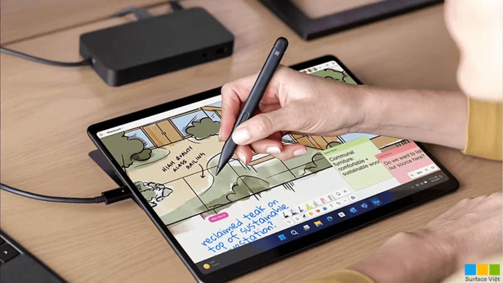 - Thiết bị tương thích với bút Surface Pen, hỗ trợ ghi chú và sáng tạo nội dung nhanh chóng.